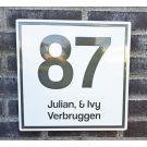 Ce numéro de maison modèle élégant a une fixation de store intégrée. Les côtés sont à double tour ce qui a un effet très robuste. A l'arrière de la pièce à double tour se trouvent 2 entrées de serrure dites inversées. Vous pouvez facilement y accrocher le numéro de maison sans trous de vis visibles dans le panneau lui-même.
